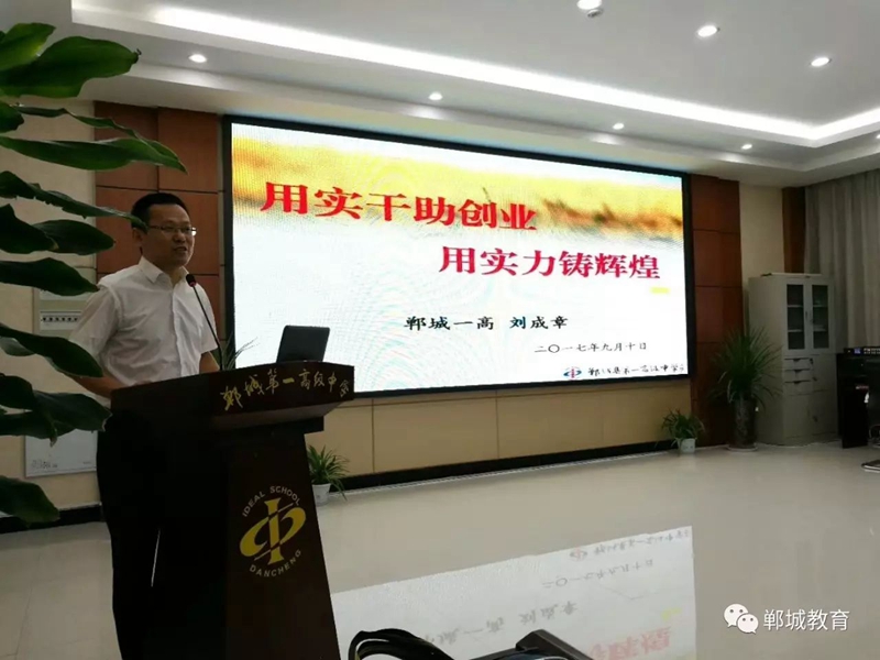 9月10日,在郸城一高会议室召开的庆祝全国第33个教师节座谈会上,郸城一高校长刘成章在发言中就引用了上述6句诗,汇报郸城一高的工作,表达郸城一高人对领导支持的感谢,总结郸城一高的创业信念、管理经验、办学思想、奉献精神和不懈追求,可谓构思巧妙,令人赞叹。但这还不是最绝的,最绝的还在后头。
